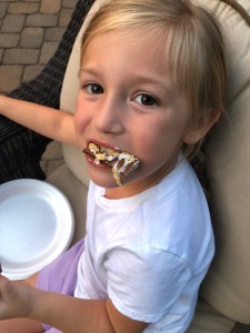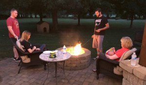 I grilled hamburgers and hot dogs, and we spent the evening together outside around a warm fire. The gals played Uno, and we made s’mores around the campfire.